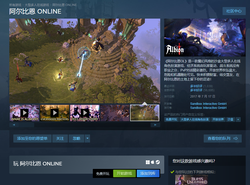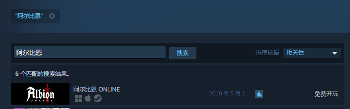 1、《阿尔比恩ol》PC版需要在Steam下载,首先打开steam商店,搜索“阿尔比恩”,点击进入商店页面。