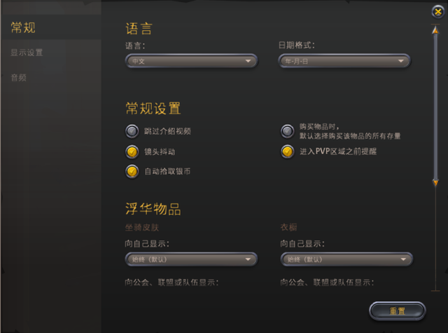 2、登录游戏后,我们可以设置游戏语言、显示设置等。