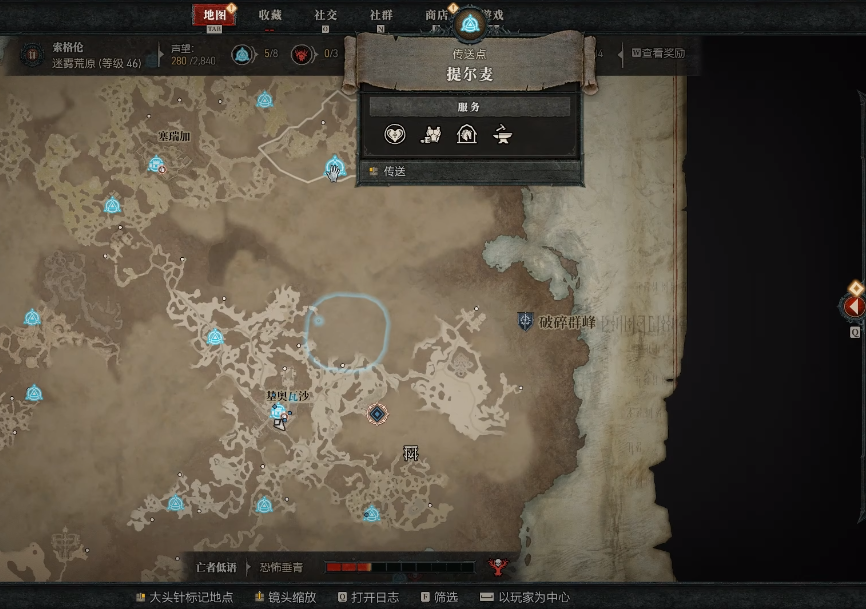 1、首先,我们传送到地图右上方的提尔麦传送点;