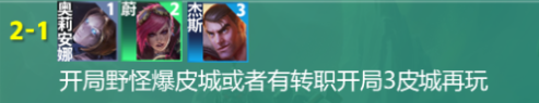 开局3皮城再玩,因为现在3皮城刚需一个3费,所以3皮城一定是野怪爆皮城,或者开局拿皮城心或者开书才能天胡,能开局天胡的皮城大连败也能收出比较好的菜。