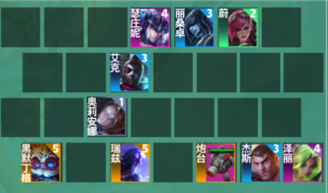 羁绊:6皮城、2格斗家、2枪手、2祖安、2弗雷、2神谕、1发明