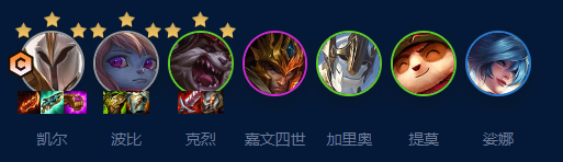 羁绊:5德玛西亚、2术士、2裁决战士、2司令、3约德尔人