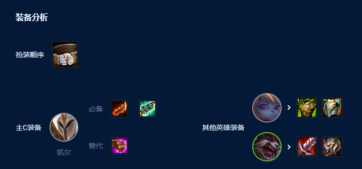 前期直接用三德玛过度,波比带肉装和光明肉装稳住前期
