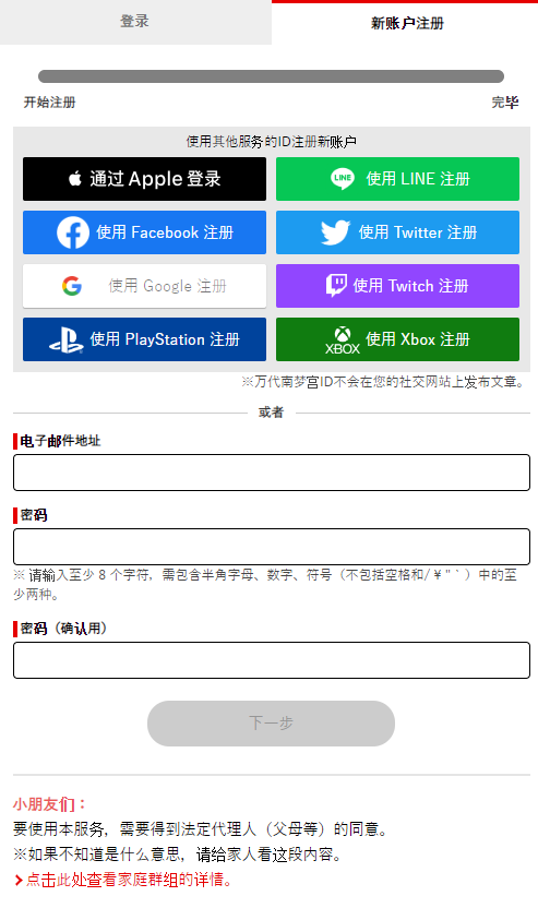 1、首先,我们需要注册一个万代南梦宫的官网账号;