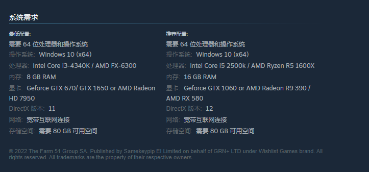 显卡: Geforce GTX 1060 or AMD Radeon R9 390 / AMD RX 580