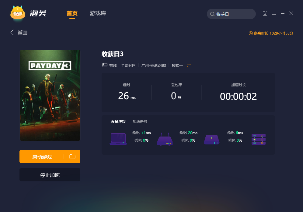 1、首先打开泡芙加速器,搜索“收获日3”进入游戏专区加速;
